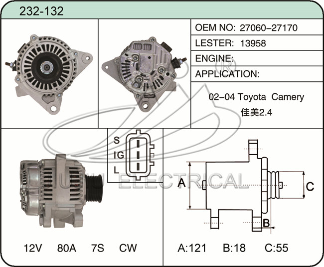 APPLICATION:02-04 Toyota Camery