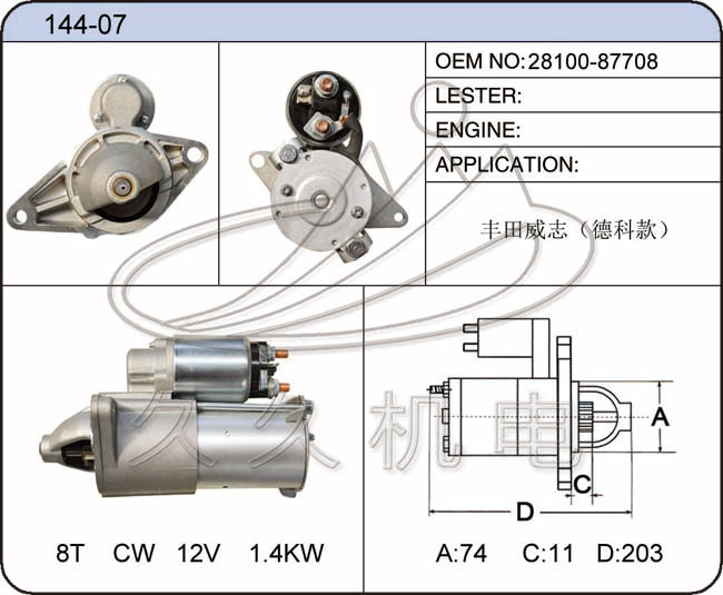 109-47 (起动机克莱斯勒手动道奇酷威2.7)