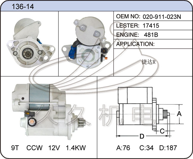109-47 (起动机克莱斯勒手动道奇酷威2.7)