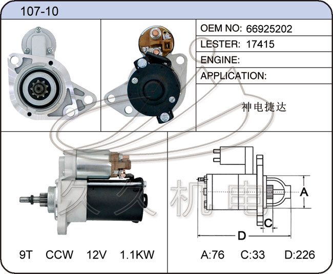 109-47 (起动机克莱斯勒手动道奇酷威2.7)