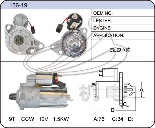适用车型:05款捷达/宝来 1.6/1.8/1.8T(自动)(方插)