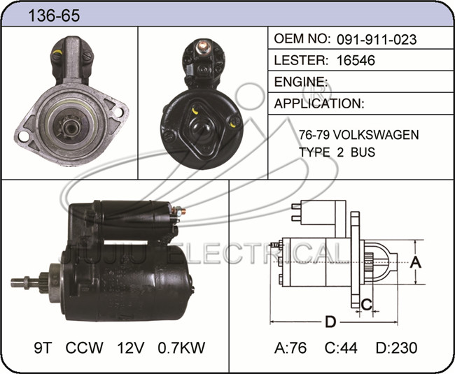 APPLICATION:76-79 VOLKSWAGEN TYPE 2 BUS